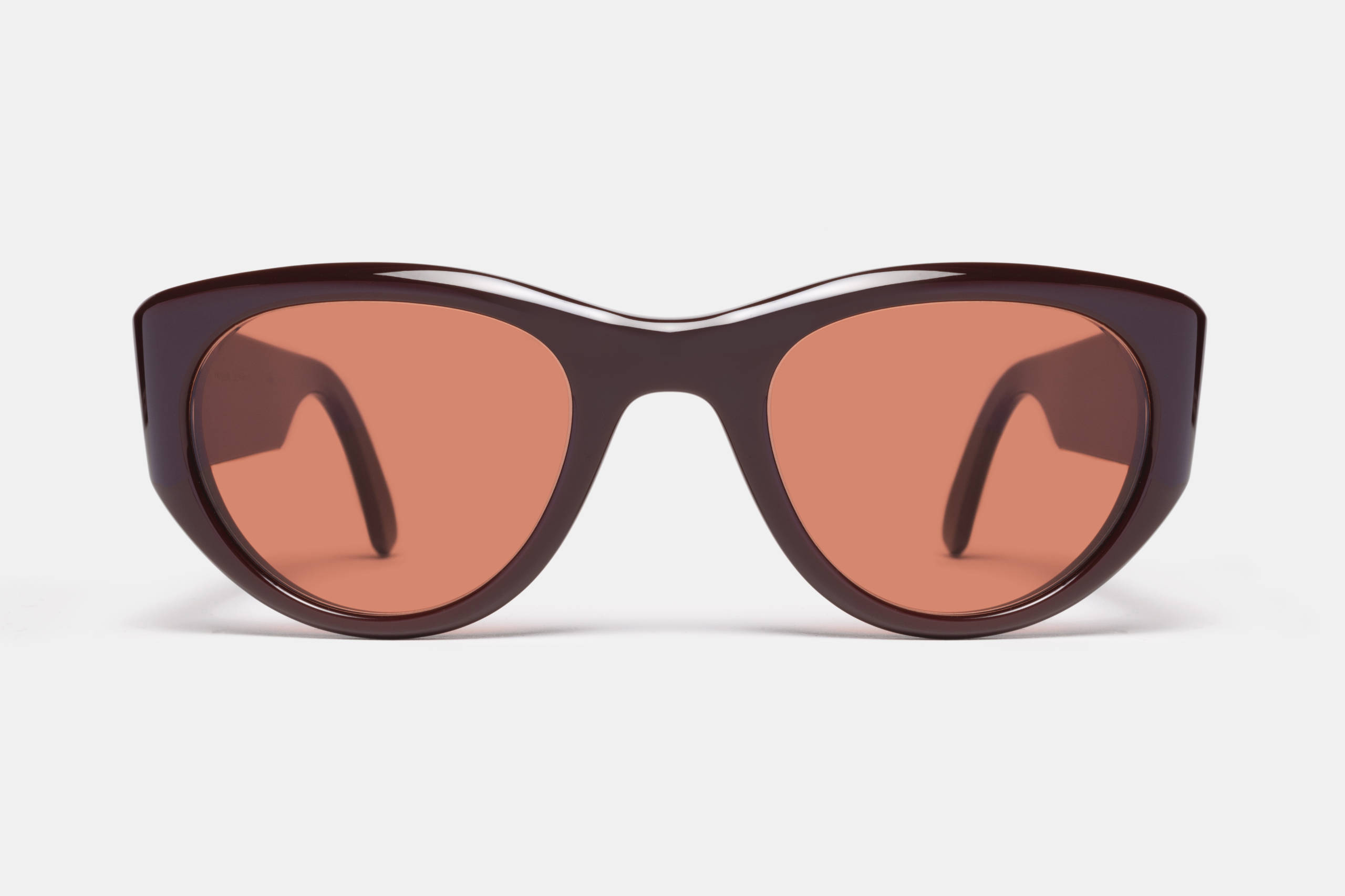 Sully c’est une Ona sur mesure pour femmes. Forme plus triangulaire, pont affiné, un peu 50’s, mais toujours en branches larges, souriante et présente. C’est une lunette féminine et puissante. Ici en acétate burgundy et verres vermillon pour une allure rétro chic, elle peut aussi être réalisée en écaille véritable ou corne de buffle.